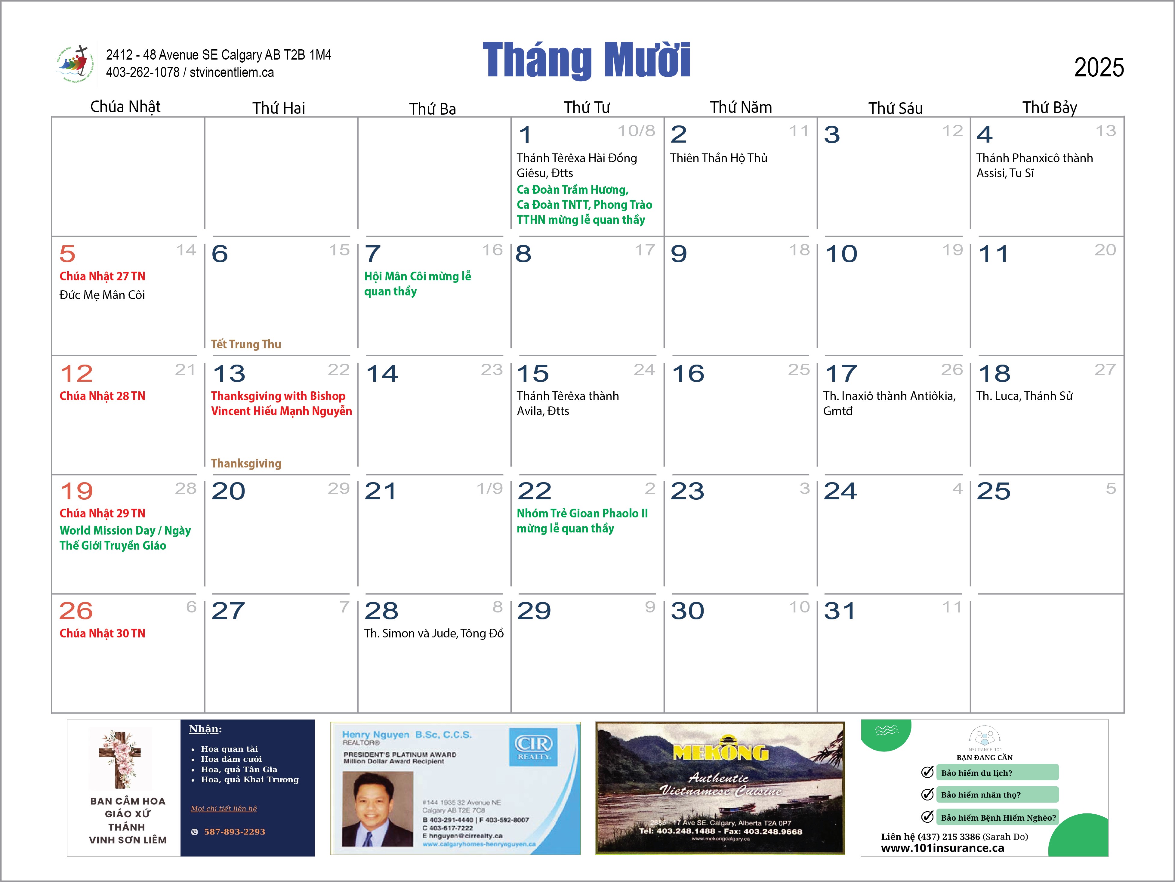 - 9:30 AM: Lễ Kính Đức Mẹ